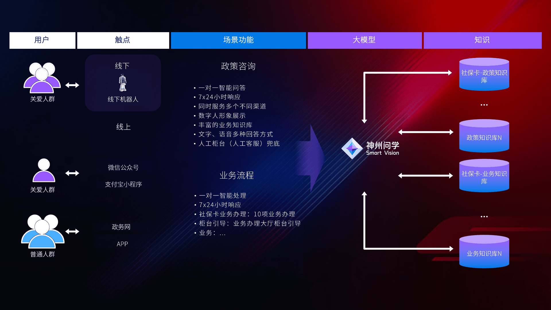 • 内嵌业务流程,,,,通过语音互动对话即可完成业务咨询办理。。